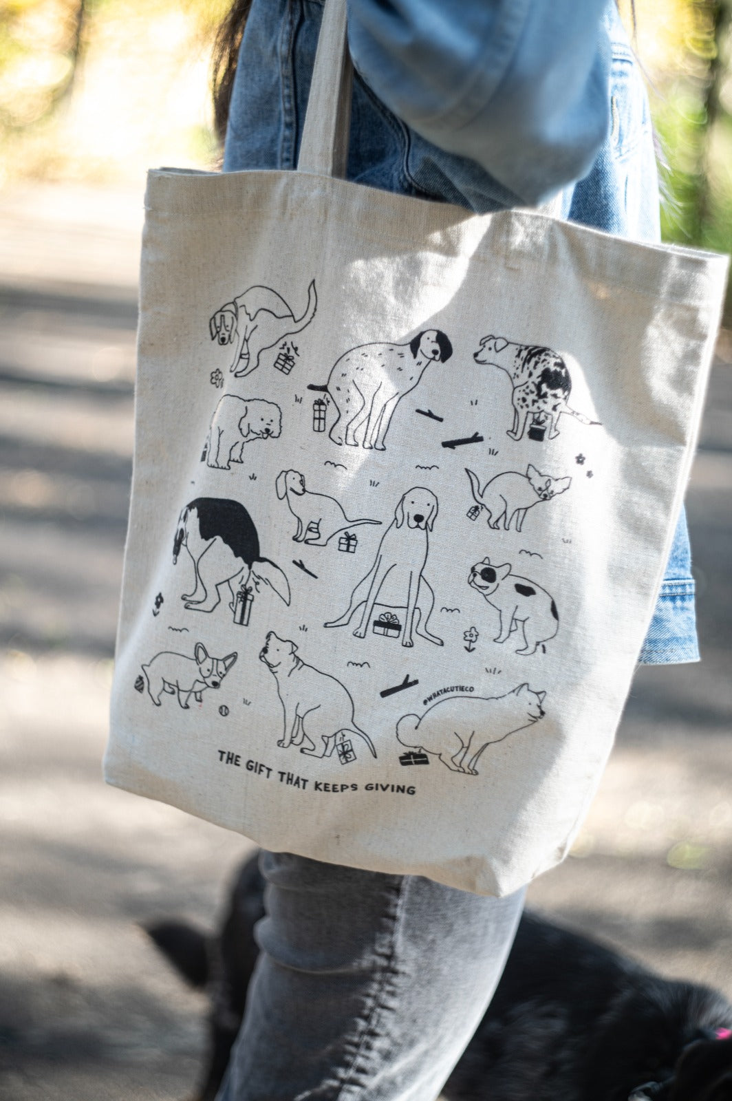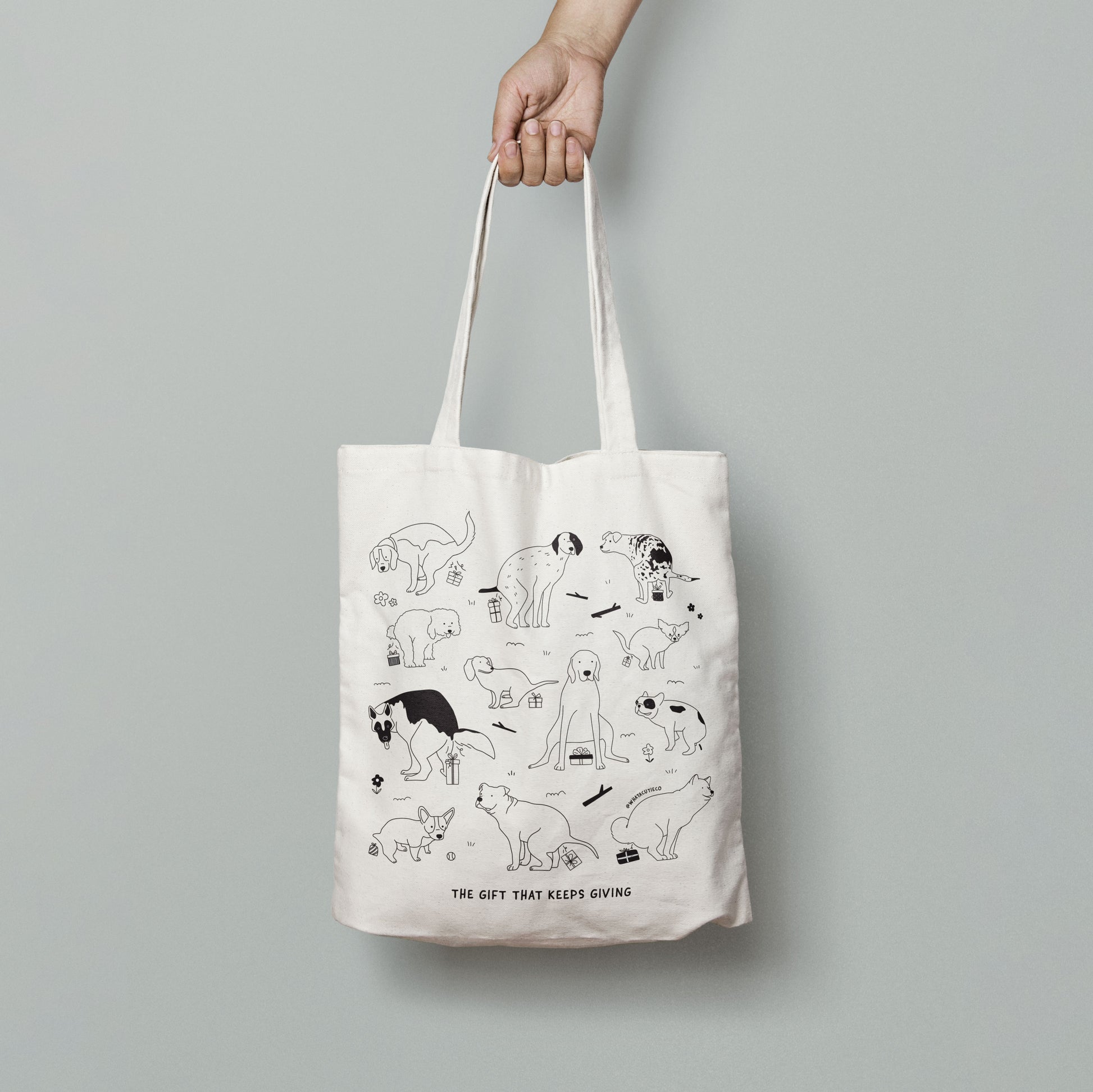 Tote around your dog-loving pride with this quirky Dog Gift Tote! Crafted from quality cotton canvas, this tote is designed with a gusset for extra storage and is designed with a funny dog illustration silkscreen printed on the front. Totes awesome!